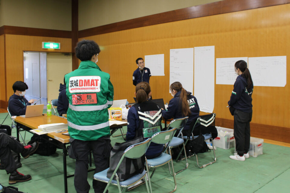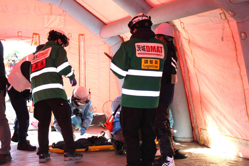 この訓練は、内閣府主催で毎年1回行われているもので、北海道から沖縄まで、まさに全国の関係機関が参加しています。今回は『首都直下地震』を想定して実施され、茨城県は被災地隣県ということで、重要な位置づけとなっていました。当院からは、実際に訓練で活動する「プレーヤー」として1チーム(医師2名・看護師1名・ロジスティックス2名)と、開催者側として訓練を管理する「コントローラー」として看護師1名が参加しました。