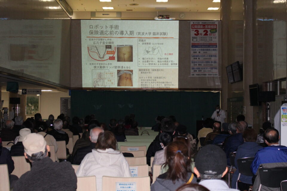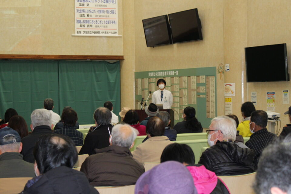 今年度の公開講座は、県民の皆様に当院で行われている様々な診療に理解を深めていただくため「ロボット手術の最新技術と当院の事例」をテーマに講演会と医師、看護師等による医療相談を行いました。