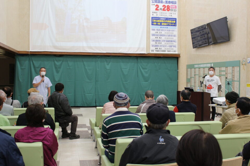 今年度の公開講座は、県民の皆様に当院で行われている様々な診療に理解を深めていただくため「消化器領域の内視鏡治療~内科・外科 最先端のアプローチ~」をテーマに講演会と医師、看護師等による医療相談を行いました。