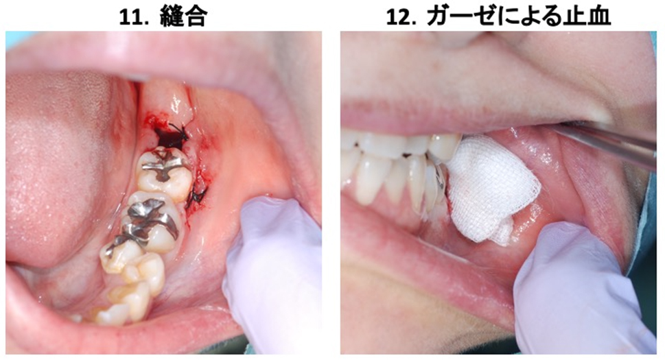 抜歯後は縫合を行います。手術後3日目くらいまで、腫れた後、退きます。抜糸は約1週間後行い終了となります。