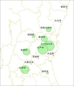 図1.令和6年度入院者の住所地【丸の大きさは人数を反映(QGISで作成)】
